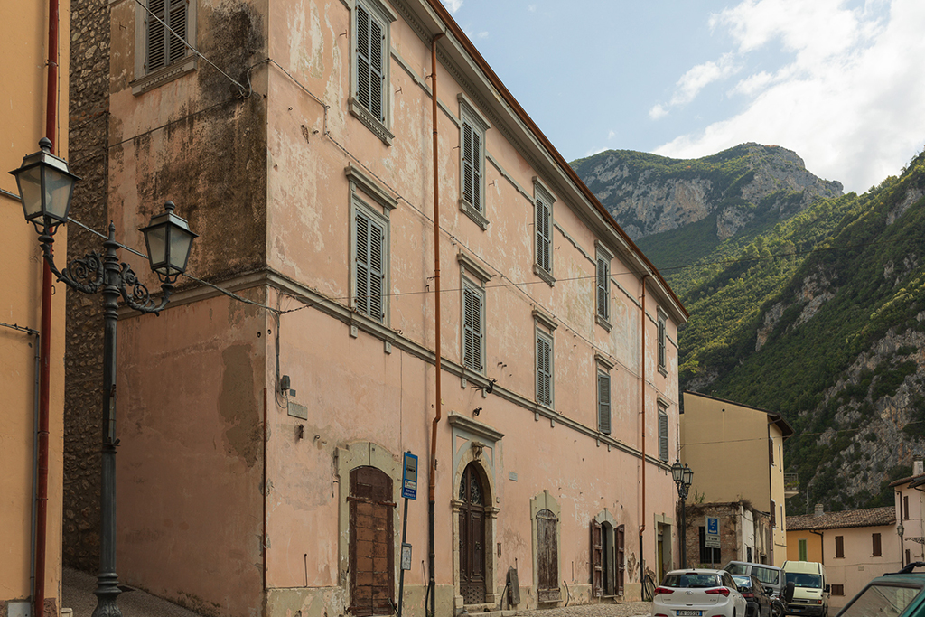 The building looks over Garibaldi Square and is laid out on three levels with a large botanic garden at the rear created by the Master Silvano Silvani. The large reception room has a coffered ceiling and a precious 16th century pictorial cycle, with the noble coat of arms of the various houses that governed over the region. In this reception room there is also an ancient weapons collection of enormous value including original pieces from the Roman age.